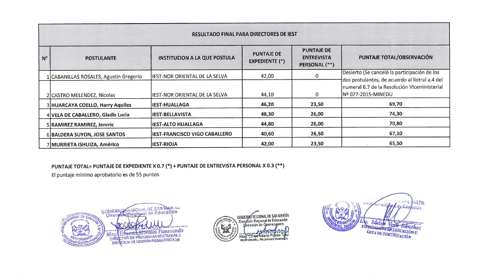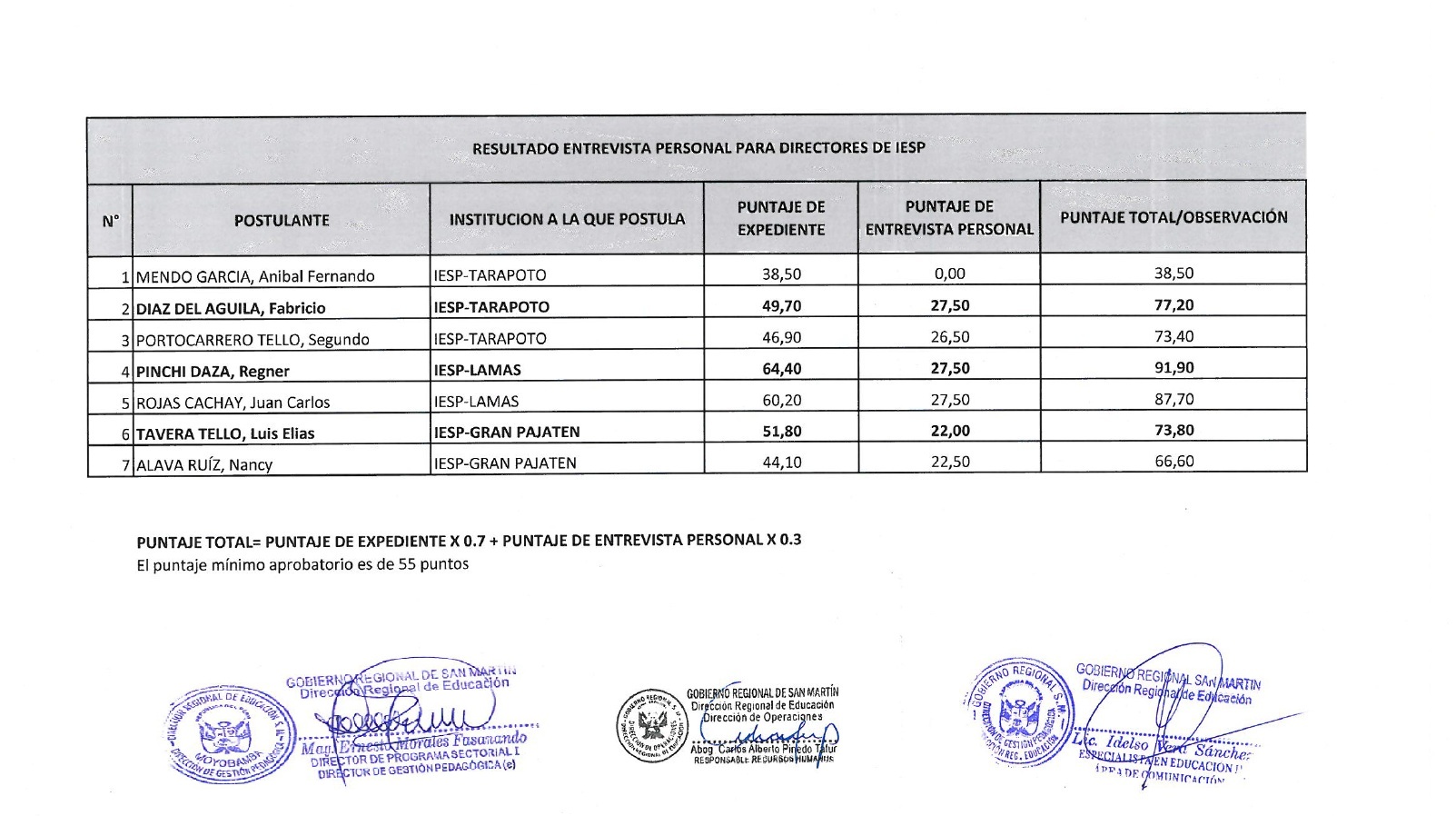 Resultado de entrevista personal - Concurso para Directores de IESP.
